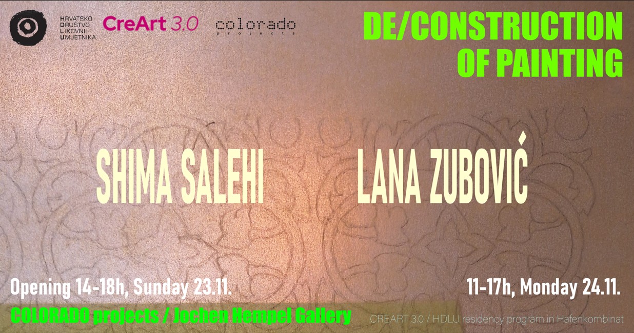 From November 23 to 24, 2025, two new exhibitions by international artists, Shima Salehi from Finland and Lana Zubović from Croatia, will be on view at Jochen Hempel Art Gallery. The exhibition is part of the residency De/Construction of Painting, as part of the European project CreArt 3.0.