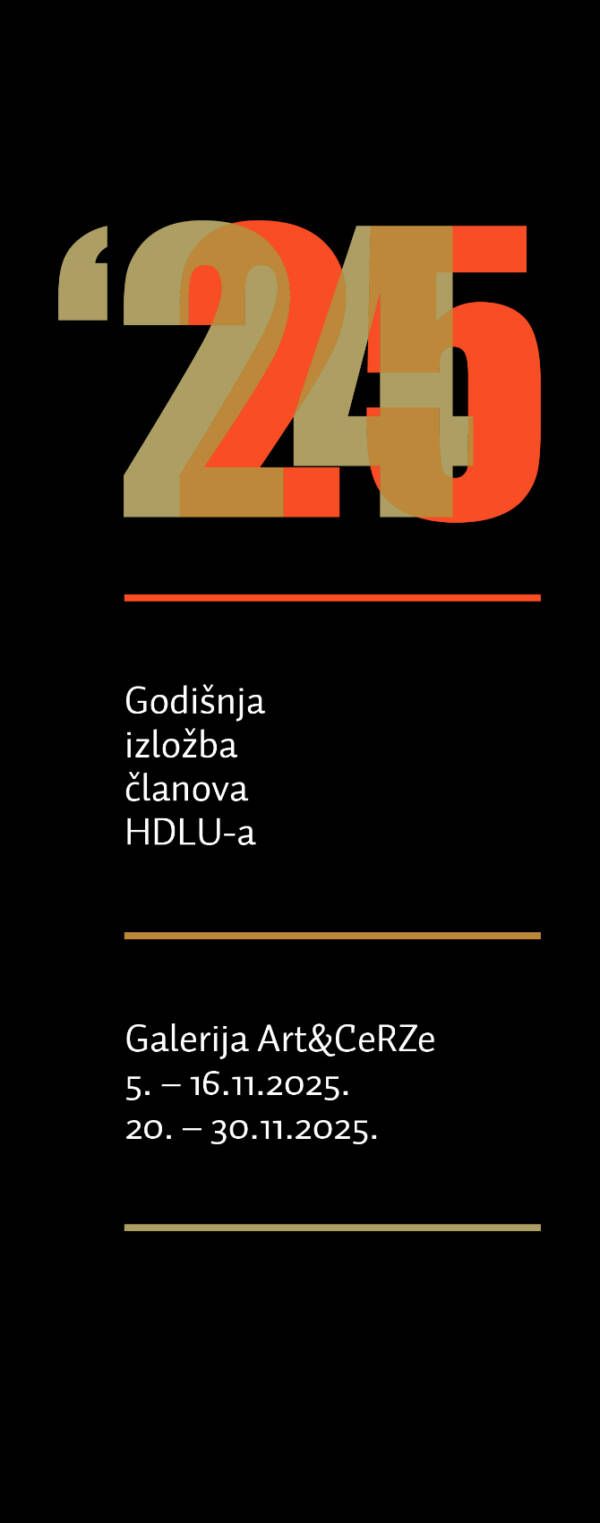 GODIŠNJA IZLOŽBA ČLANOVA HDLU 2025. Galerija Art&CeRZe 5.11. – 16.11.2025. 20.11. – 30.11.2025. U srijedu, 5.11.2025. u 18 sati u…