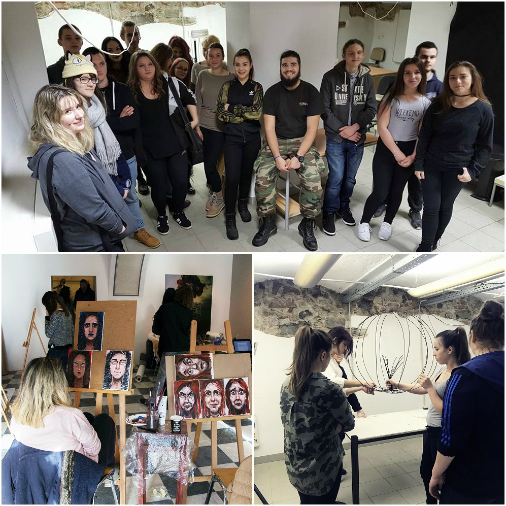 Na mobilnosti u Mariboru (Slovenija) od 14. 1. do 27. 1. 2018. sudjelovali su učenici iz Škole likovnih umjetnosti u Splitu (Lea Markotić, Toma Miljak, Anamaria Totić, Blanka Bižaca, Jelena Cambj, Anja Metikoš, Roko Jelača, Dea Tadić, Miro Emrić, Bojana Mladenovska i nastavnica Zrinka Barbarić) i Škole primijenjene umjetnosti i dizajna iz Osijeka (Marija Josipović , Valentina Pavlović, Vanessa Stanković, Ankica Anđelić, Ivona Malčić, Marija Vidić, Nika Sekereš, Hrvoje Ivanković, Miron Jelić i Rober Hegeduš i nastavnik Drago Stojaković). Učenici su na dvotjednoj stručnoj praksi radili pod mentorstvom umjetnika koji su članovi udruge KIBLA: Irenom Parmič, Sašom Bezjakom, Cameronom Bobrom, Viktorom Šestom i Metkom Kavčić. Osim stručne prakse, učenici su imali organizirane kulturne aktivnosti te su posjetili Umjetničku galeriju u Mariboru, srednju umjetničku školu u Mariboru, te Muzej suvremene umjetnosti Metelkova i Modernu galeriju u Ljubljani. Radove koje su izradili pod vodstvom mentora učenici su predstavili na završnoj izložbi u galeriji ArtKIT (kratki video o izložbi autora Roka Jelače možete pogledati ovdje.)