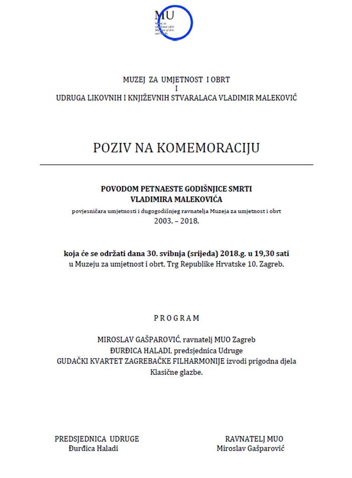 KOMEMORACIJA povodom 15. godišnjice smrti V. Malekovića