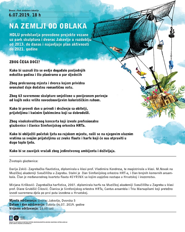 U subotu, 6.srpnja 2019. godine od 18 sati u Dvorcu i Parku skulptura Jakovlje organizira se događanje pod nazivom “NA ZEMLJI OD OBLAKA” u sklopu koje će HDLU predstaviti provedene projekte vezane uz park skulptura i dvorac Jakovlje u razdoblju od 2013. do danas i najaviti plan aktivnosti do 2021. godine.