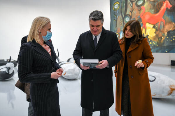 Tamara Floričić, u ime udruge ArtRencontre, predsjedniku i prvoj dami poklonila je Kopačevu monografiju koju je početkom ove godine izdala renomirana pariška izdavačka kuća Gallimard.