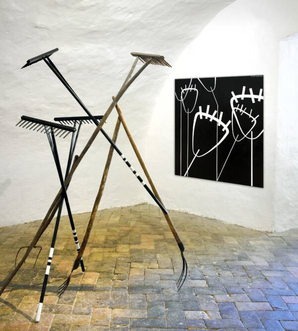 Grablje pak kao ready made instalacija, kao svojevrsni „čistač“, povezuju u cjelinu cijeli koncept izložbe.