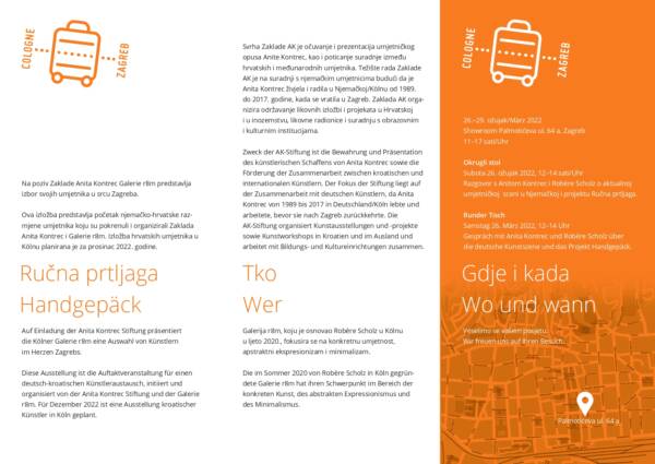 Pop-up izložbi od 26.3- do 29.3 ( od 11-17 sati) u SHOWROOMU u Palmotićevoj 64 u Zagrebu galerist Robere Scholz će predstaviti radove desetero umjetnika i umjetnica njegove galerije. Izložba u Zagrebu početak je dugoročne suradnje Zaklade Anite Kontrec i Galerie r8m s ciljem otvaranja dijaloga između suvremenih njemačkih i hrvatskih umjetnika.  Izabrani hrvatski umjetnici izlagat će u Galerie r8m  u prosincu 2022. godine.