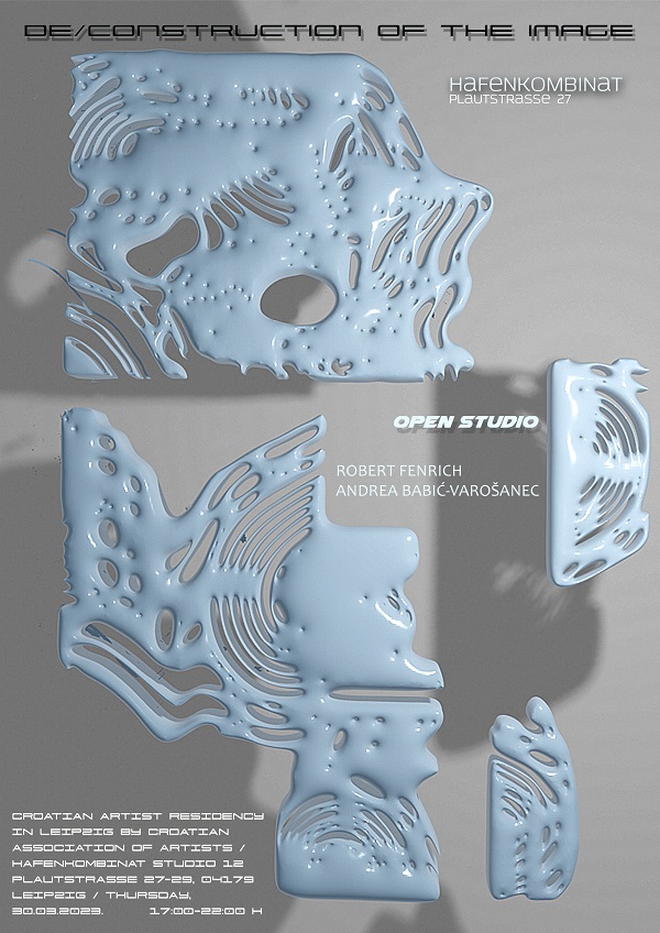 U sklopu nastavka projekta “De/Konstrukcija slike” u HDLU A.I.R. Leipzig u veljači i ožujku boravili su umjetnici Andrea Babić-Varošanec i Robert Fenrich. Oni Vas pozivaju da ovaj četvrtak 30.03.2023. posjetite studio, upoznate ih i pogledate radove nastale za vrijeme rezidencije. Studio će biti otvoren za javnost u terminu 17 do 22 sata.