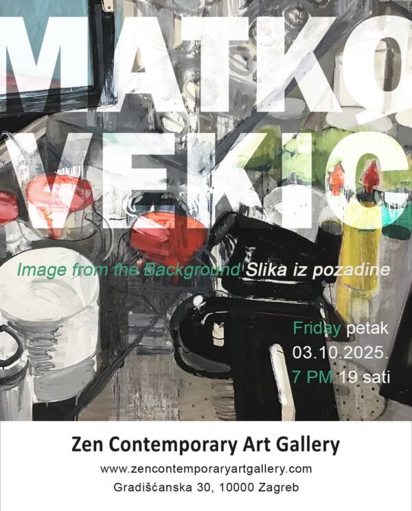 U zagrebačkoj galeriji Zen Contemporary Art, 10. listopada u 19 sati otvara se samostalna izložba Matko Vekić, jednog od najznačajnijih predstavnika hrvatskog suvremenog slikarstva. Na izložbi će biti predstavljen njegov novi slikarski ciklus pod nazivom “Slika iz pozadine”.