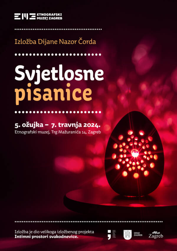 U utorak, 5. ožujka 2024. u 18 sati u Etnografskome muzeju, Trg Mažuranića 14., otvarena je izložba „Svjetlosne pisanice“ Dijane Nazor Čorda. Izložba je dio velikoga izložbenog projekta “Intimni prostori svakodnevice”.Izložba je otvorena do 7. travnja 2024.