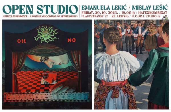 Hrvatska umjetnička rezidencija u Leipzigu u organizaciji HDLU – Hrvatskog društva likovnih umjetnika / Hafenkombinat studio 12, Plautstraße 27-29, 04179 Leipzig / Petak, 20.10.2023. / 19:00 – 00:00 /