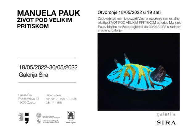 Izložba Život pod velikim pritiskom Manuele Pauk otvara se u srijedu 18. svibnja u 19h u Galeriji Šira.