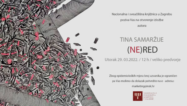 Otvorenje izložbe “(Ne)red”, autora Tina Samaržije u utorak, 29.ožujka 2022. u 12 sati u Nacionalnoj i sveučilišnoj knjižnici, Ulica Hrvatske bratske zajednice 4, Zagreb.