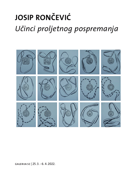 Otvorenje izložbe Učinci proljetnog pospremanja umjetnika Josip Rončević održat će se u petak, 25. ožujka u Galeriji SC u 19:00. Izložba je otvorena do 6. travnja 2022., radnim danom od 12 do 20 sati te subotom od 10 do 13 sati.