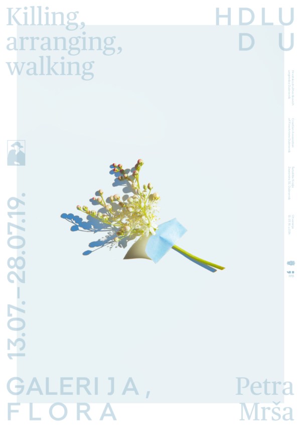 Hrvatsko društvo likovnih umjetnika Dubrovnik i Galerija Flora pozivaju na otvorenje izložbe Petre Mrša Killing, arranging, walking 13. srpnja 2019. u 20 h sati u Galeriji Flora. Izložba se može pogledati do 28. srpnja svaki dan od 18 do 22 sata.