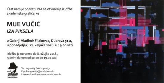 Otvorenje izložbe: utorak, 20.3.2018. u 19.00 sati u Galeriji Karas