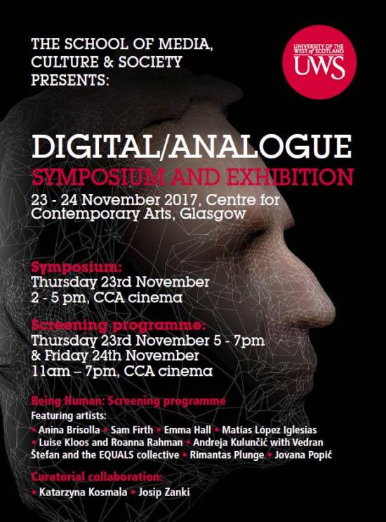 Projekt Being Human-Digital/Analogue organizira University of West of Scotland u suradnji s Centre for Contemporary Art Glasgow. Projekt obuhvaća znanstvenu konferenciju, performanse i video-screening u kinu CCA. U sklopu konferencije izlagati će Josip Zanki. Kustosi video programa su Katarzyna Kosmala i Josip Zanki. Unutar video […]