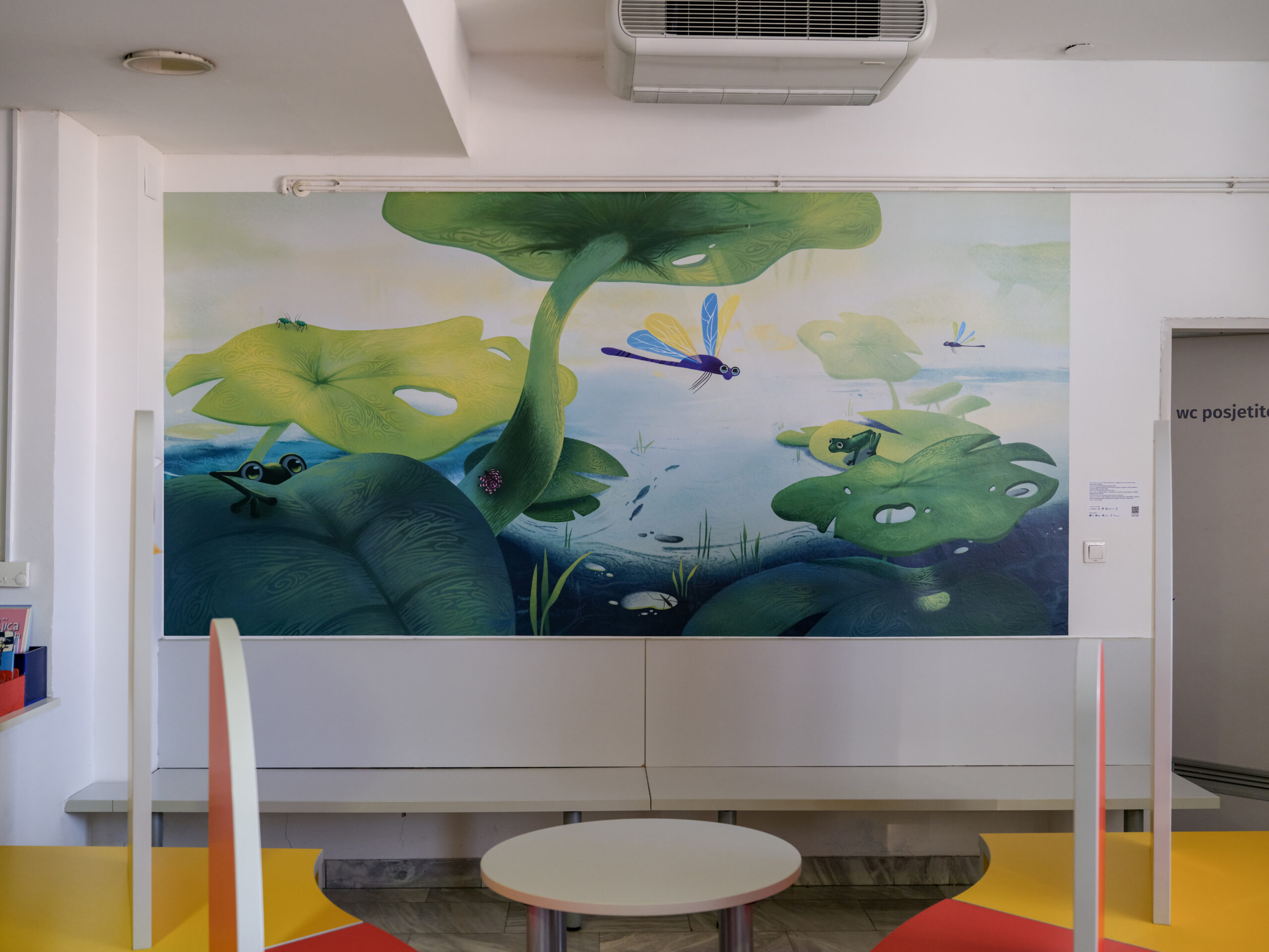 As part of the European project Healing Nature – Animation for Health and Well-being in Children Hospital Environments, murals have been installed in hospital spaces in Croatia, Portugal, and Bulgaria, creating a unique international artistic ensemble aimed at enhancing children’s well-being in hospital settings. Each of the three artworks has been installed in all three partner countries, while the Croatian mural has additionally been realized at two locations in Croatia.
