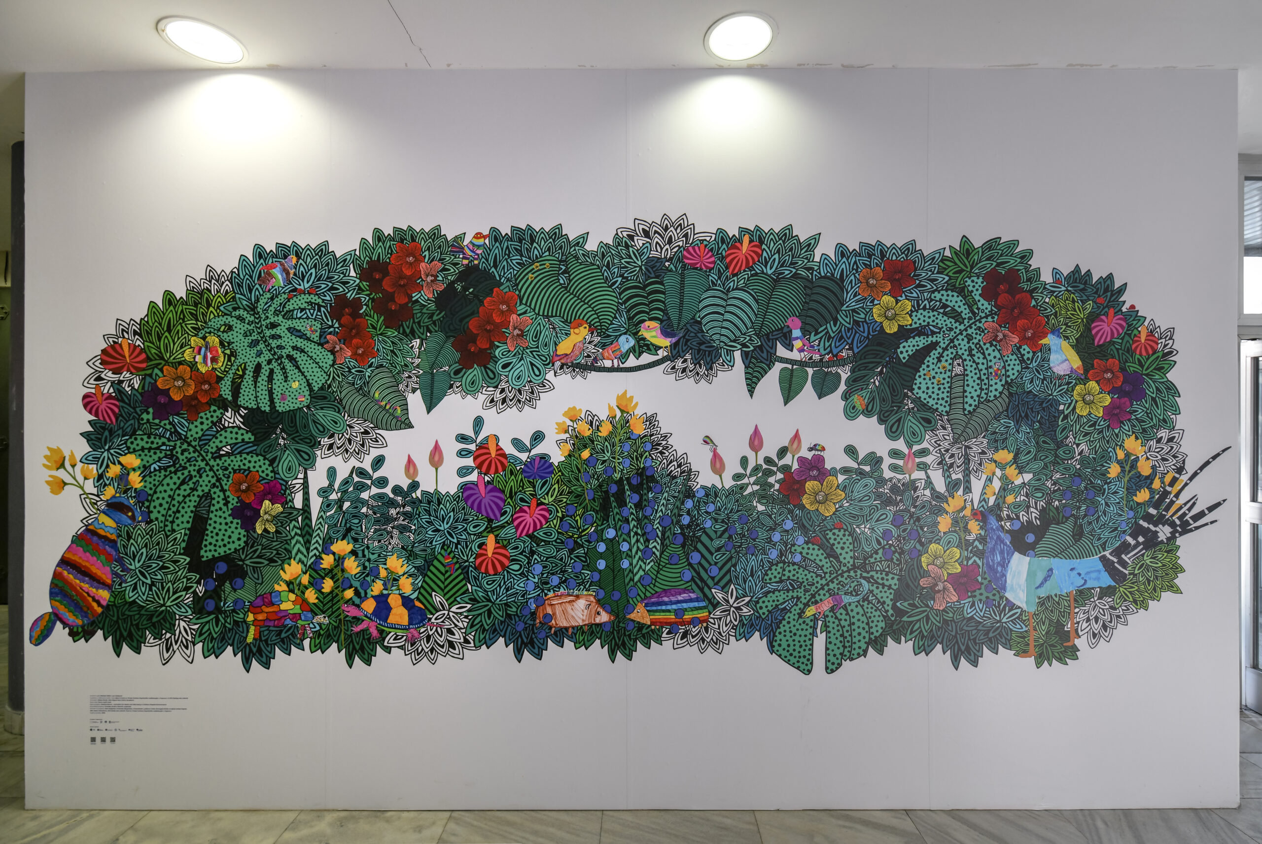 The mural “Spring Breeze”, by Natalie Wolf and the team from Lusófona University, is inspired by a spring meadow and watercolor depictions of plants and landscapes. Its gentle color palette and layered structure create a calming visual atmosphere in hospital waiting areas. This mural has been installed in hospitals in Portugal, Croatia, and Bulgaria, emphasizing the project’s shared European character.