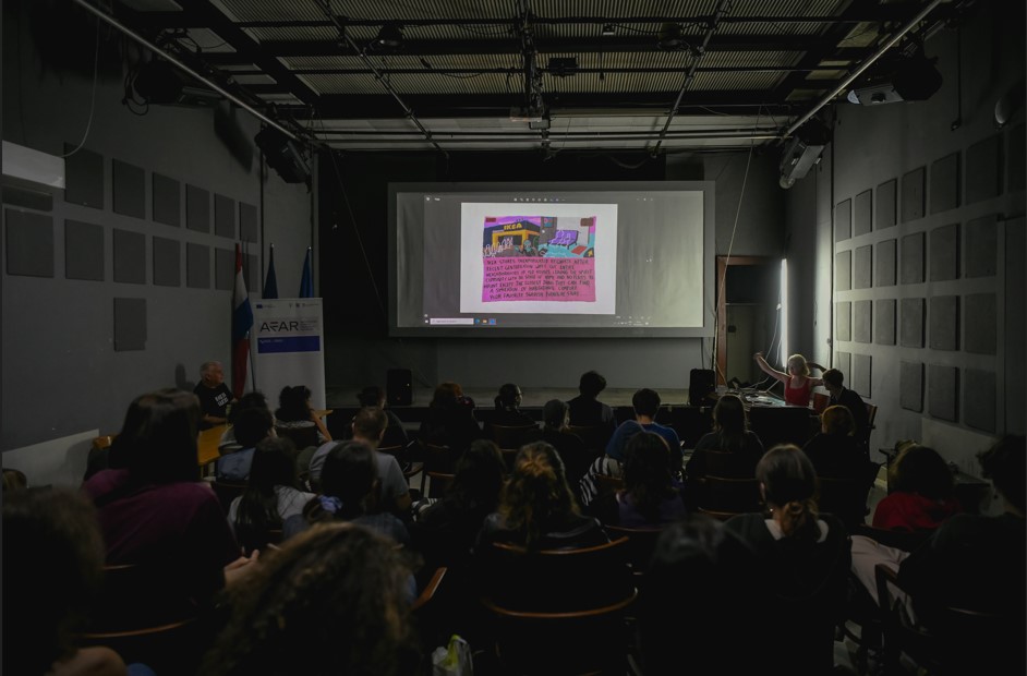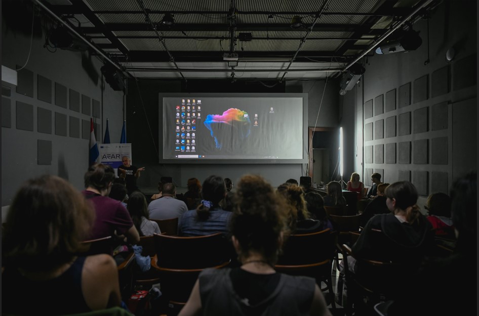 We are bringing you photos from yesterday’s AFAR Talk with Megan Dominescu (RO) and Sven Jozić (HR): Slowly But Boldly Going Nowhere: A map of artistic practice and visual upbringing, as part of the European project Artists for Artists Residency Network (AFAR), aimed at improving the mobility of contemporary visual artists and curators, thus creating greater opportunities for women in the arts. This project takes place in four European partner countries – Romania, Germany, Croatia, and Austria. The Talk took place in cooperation with the Academy of Fine Arts in Zagreb, as part of the course Introduction to the Theory of Art, by associate professor Josip Zanki, Ph.D.