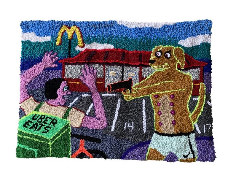 Megan Dominescu (RO) – a visual artist based in Bucharest, Romania with a background in painting and origins in Washington, D.C. She uses various mediums in her work but has focused mainly on textiles in recent years. Her works range from large-scale hand-made tapestries to embroidered interventions to textile sculptures. Megan also has started an animal (and sometimes human) clothing brand, GoodBoySecurity. Megan is a founding member at Moxa20 Studio/Gallery.