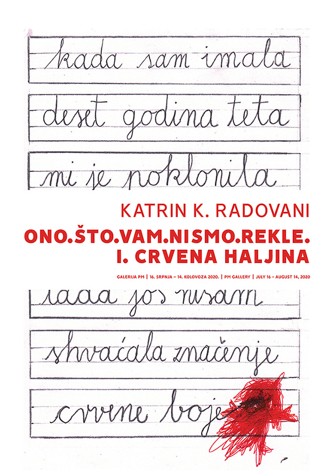 With the work What. We. Haven’t. Told. You_I, Katrin Radovani digs deep into the space of trauma caused by sexual abuse. This topic that is mostly not spoken about, a by-product of patriarchy and stigmatization of women, is still a place of duality in which often the victim, instead of the perpetrator, experiences guilt. Such psychological mechanisms are conditioned by the act of violence, as well as by the centuries-old degradation of women, as the most numerous victims of such power play. Power as a social imperative, appropriation, penetration, violation of another’s physical and mental space, all these are tentacles behind which lie disrespect, non-recognition of otherness as equal, inherent destruction that is the flip side of the society based on domination, with the eternal threat of violence that often affirms the social order. In this sense, sexuality has a special place as a source of life. To penetrate the body, desecrate the source, is a specific expression of pathological domination: often being the victims of abuse themselves, the attackers continue the circle of deprivation, desecration, in an eternal attempt to reach fulfilment, doomed to fail at the very beginning. Thus the trauma is repeated, personally, transgenerationally, almost historically, the force of destruction is maintained, hidden behind institutions, homes, customs and systems.“